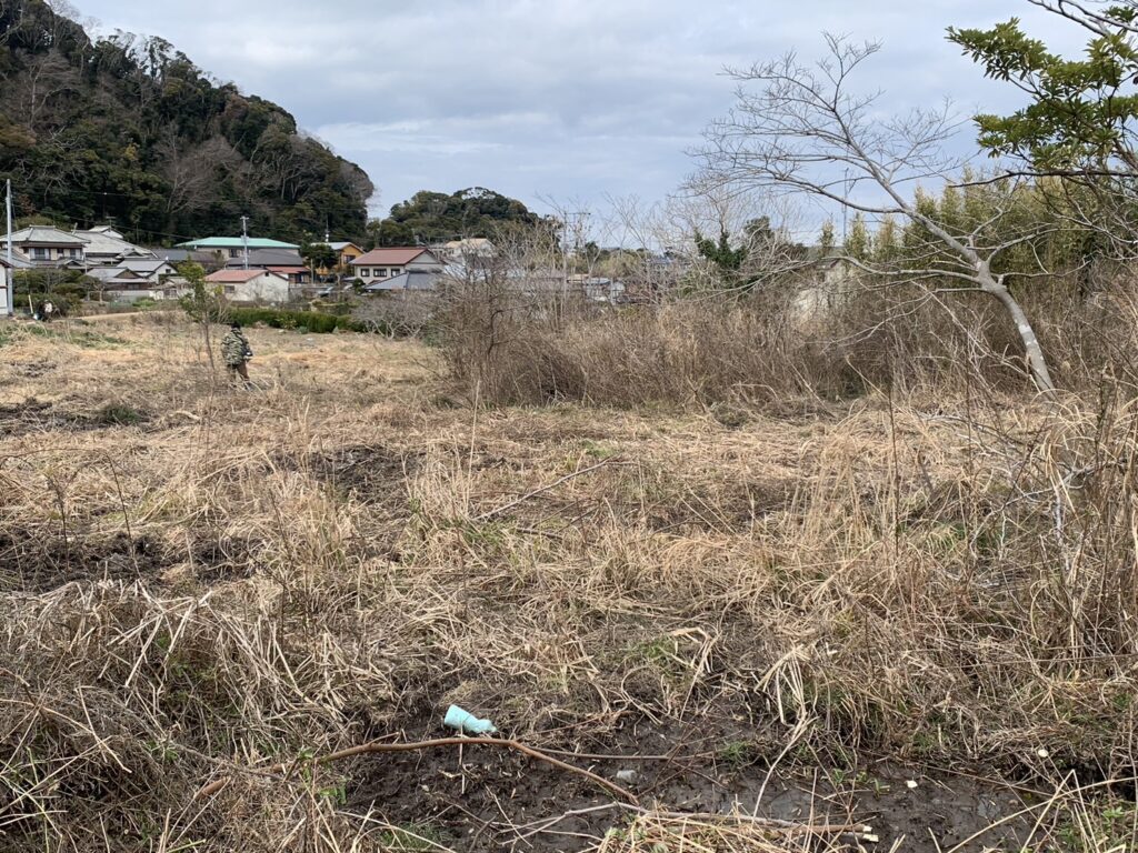 人里のすぐ近くまで荒れ地があると、イノシシと遭遇する可能性が