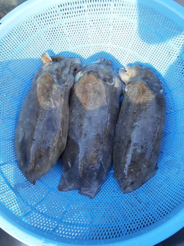2022.11.04 イカがたくさん入手できました。 まずは新鮮スミイカです。 こちらは貴重なアオリイカです。 みんなで刺身や焼いたイカをいただきました。 まさに絶品! の味でした。 館山の海の恵みに感謝です。