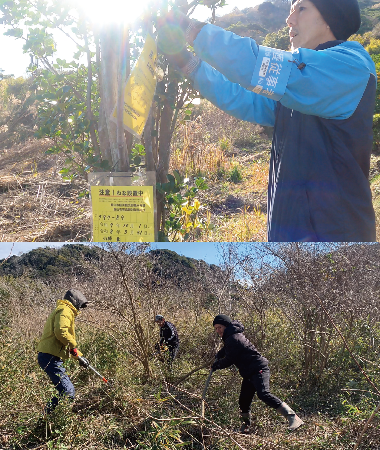 農家や地域住民、猟友会と連携し、電気柵の設置支援、監視体制の強化、罠の設置などの活動を行います。特にユンボなどを用いた土木工事に対応できる強みを活かし、荒廃地を整備することで、鳥獣の隠れ家や活動範囲を減らす物理的な対策も実施します。